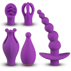 10 Speeds Purple Color Silicone Vibrator Set with 4 Heads
