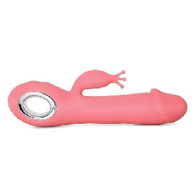 Pink Color 7 Speeds Rechargeable Silicone Penis Shape Vibrator with Rotation and Heating, medical grade silicone. Phthalate & Latex free.